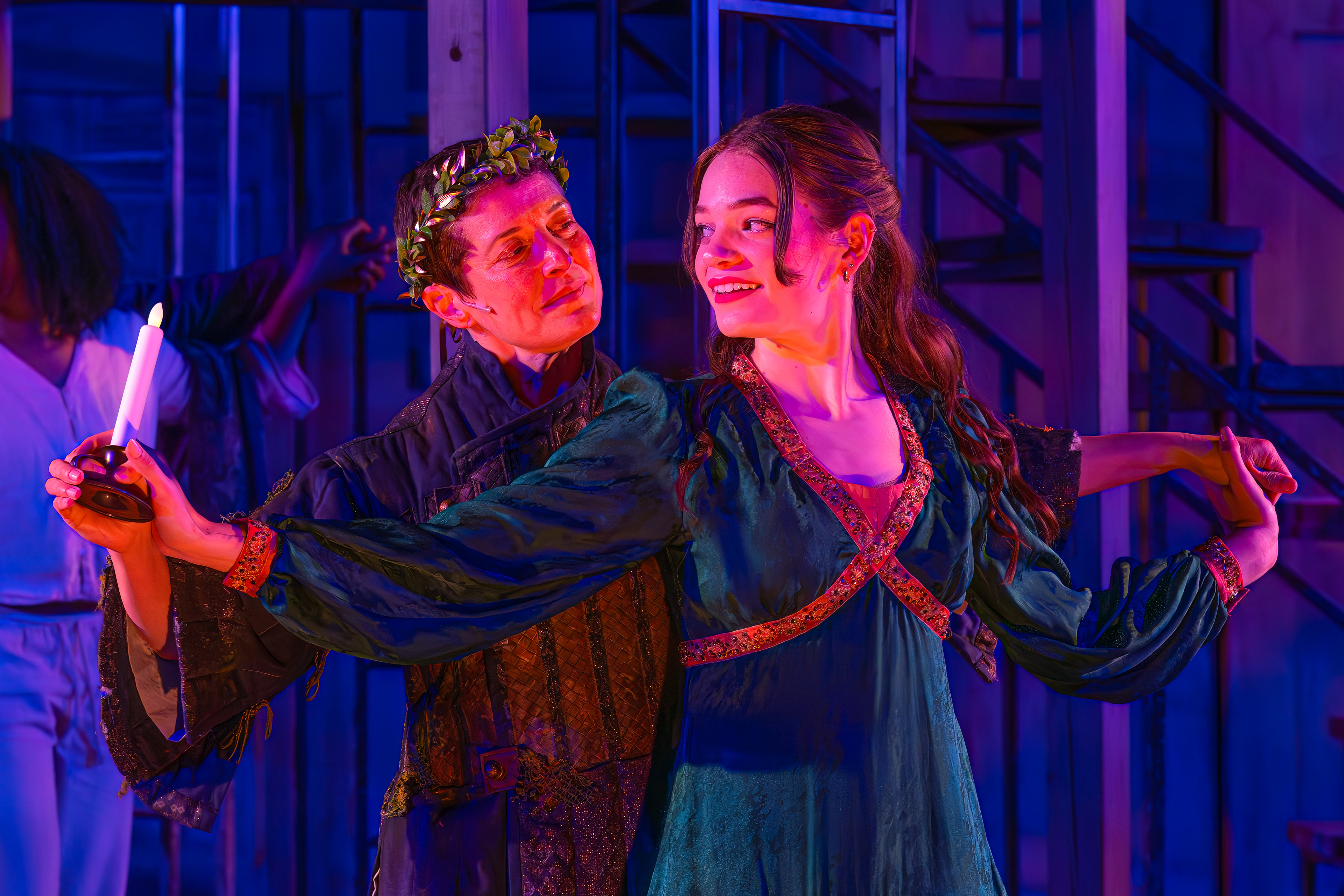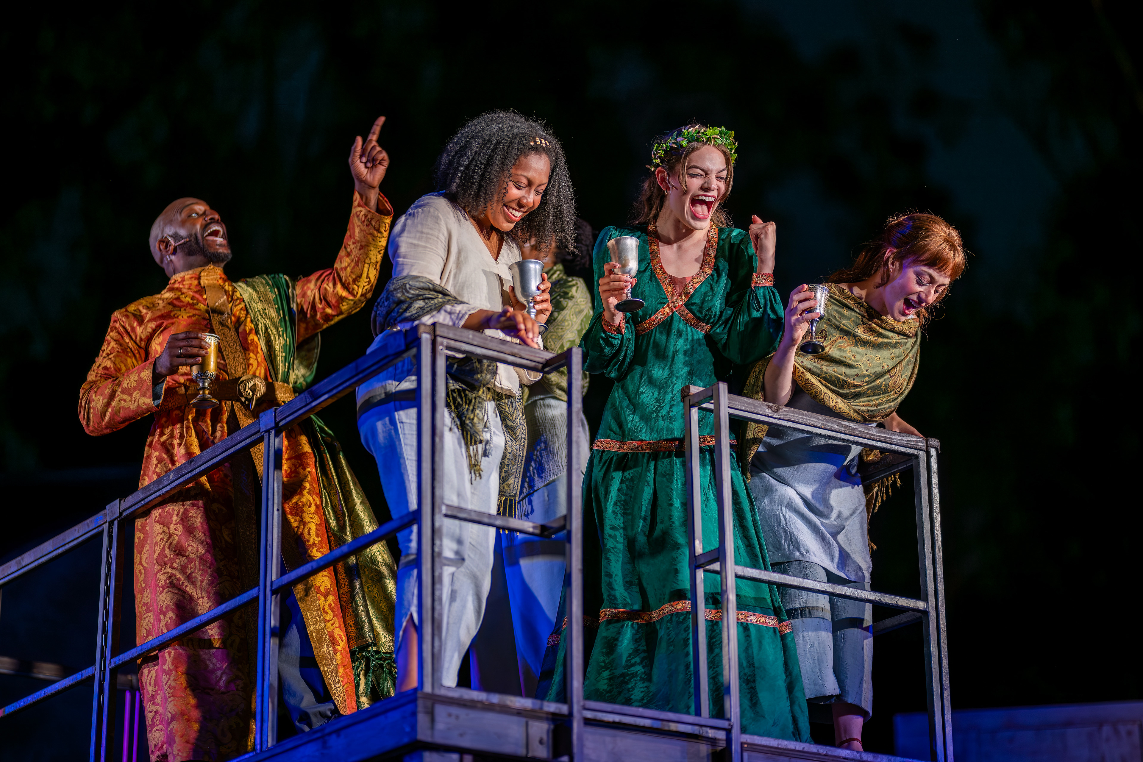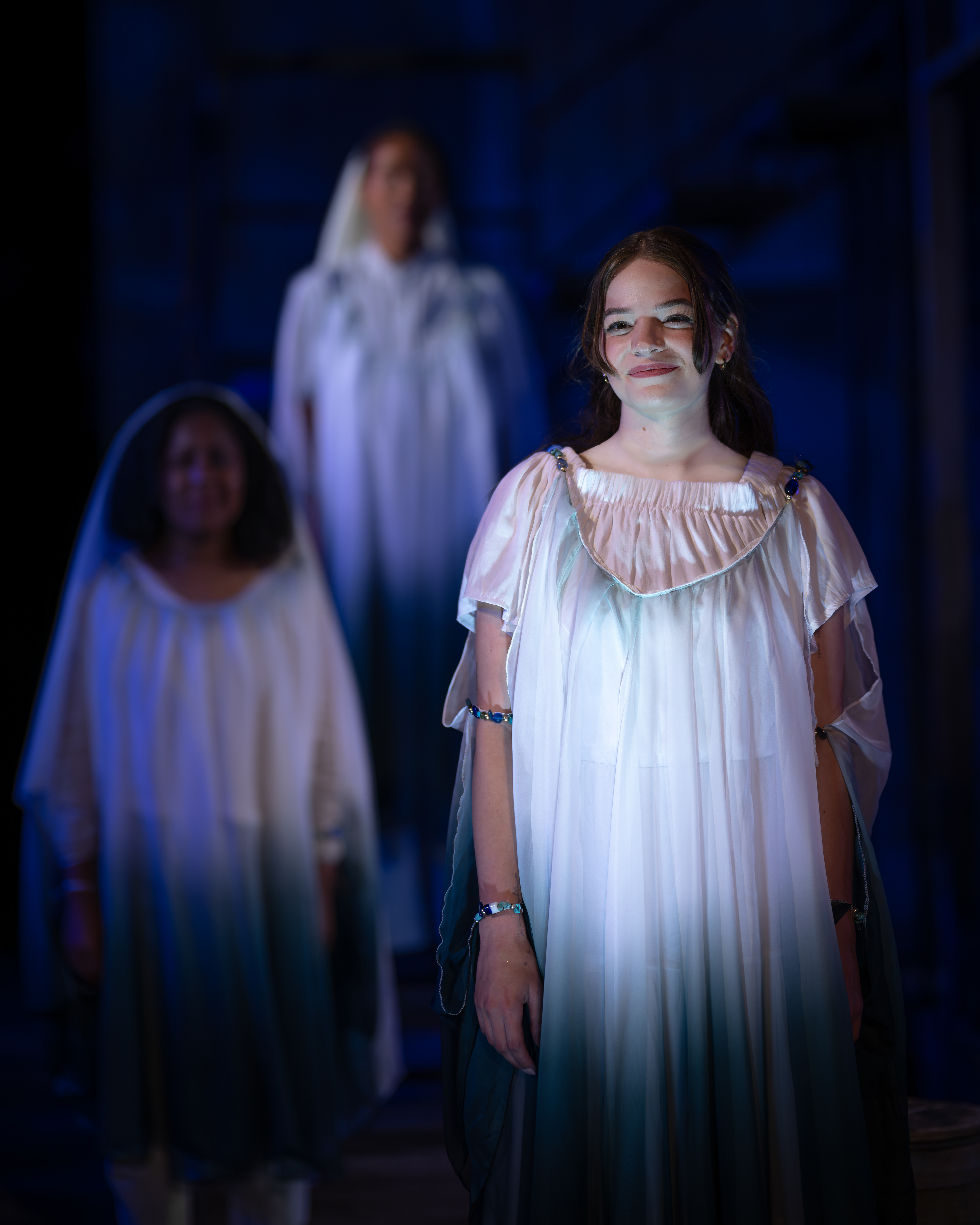 "Lily Kops is a standout, delivering with warmth and poise as Thaisa, then pivoting to sharp comic edge as the bawdy madam of Mytilene. She handles both roles with striking versatility, moving from regal grace to earthy humor with ease."
