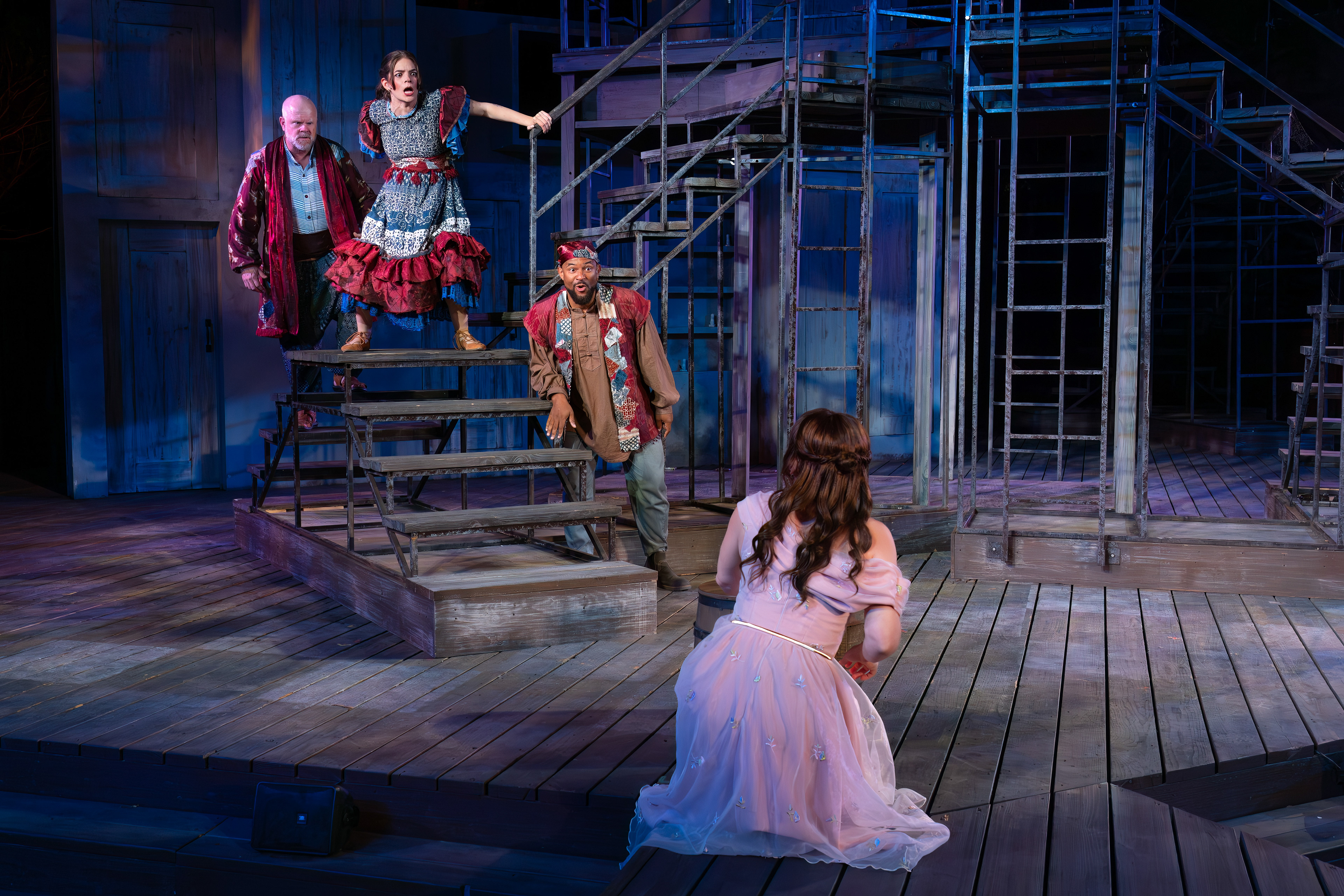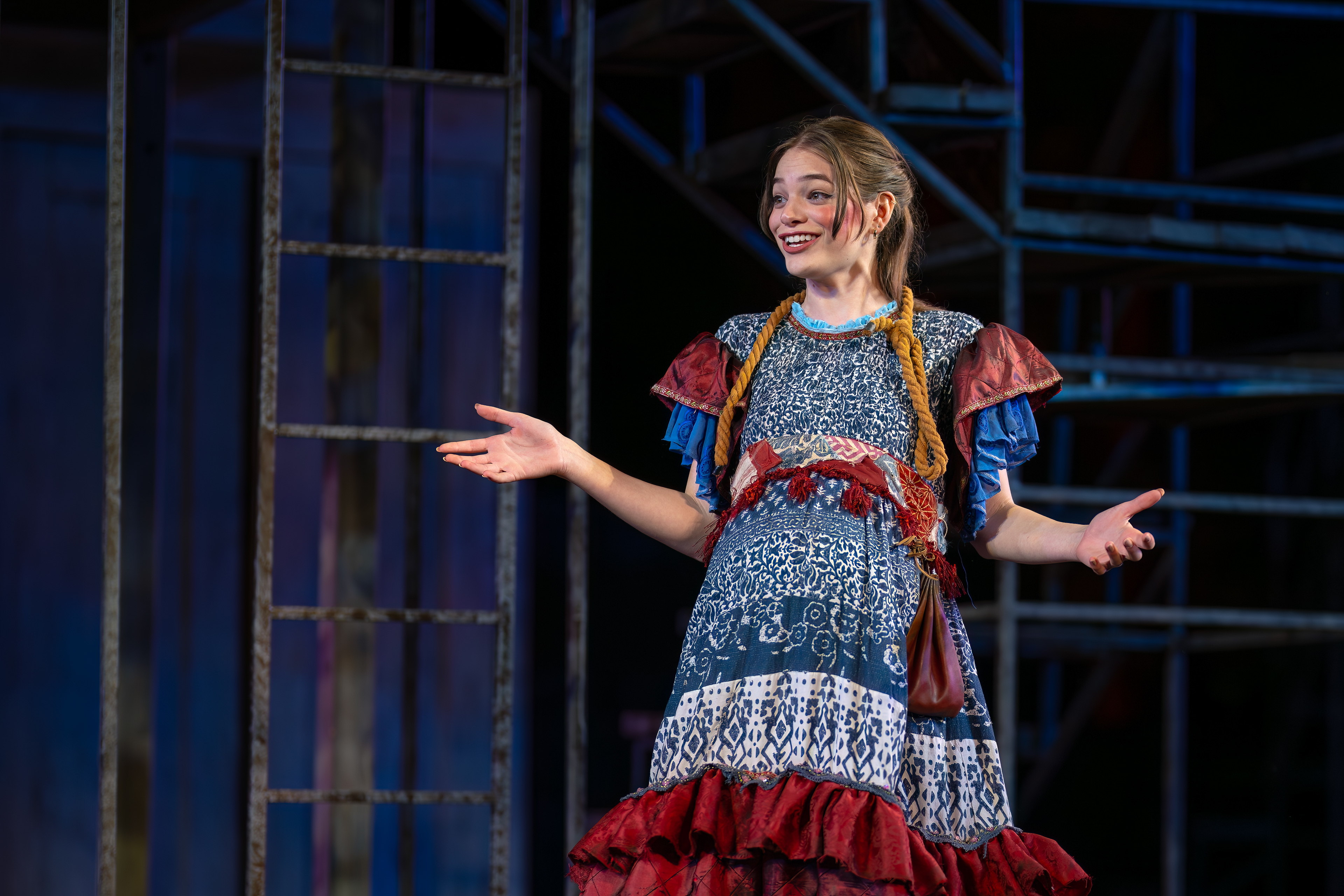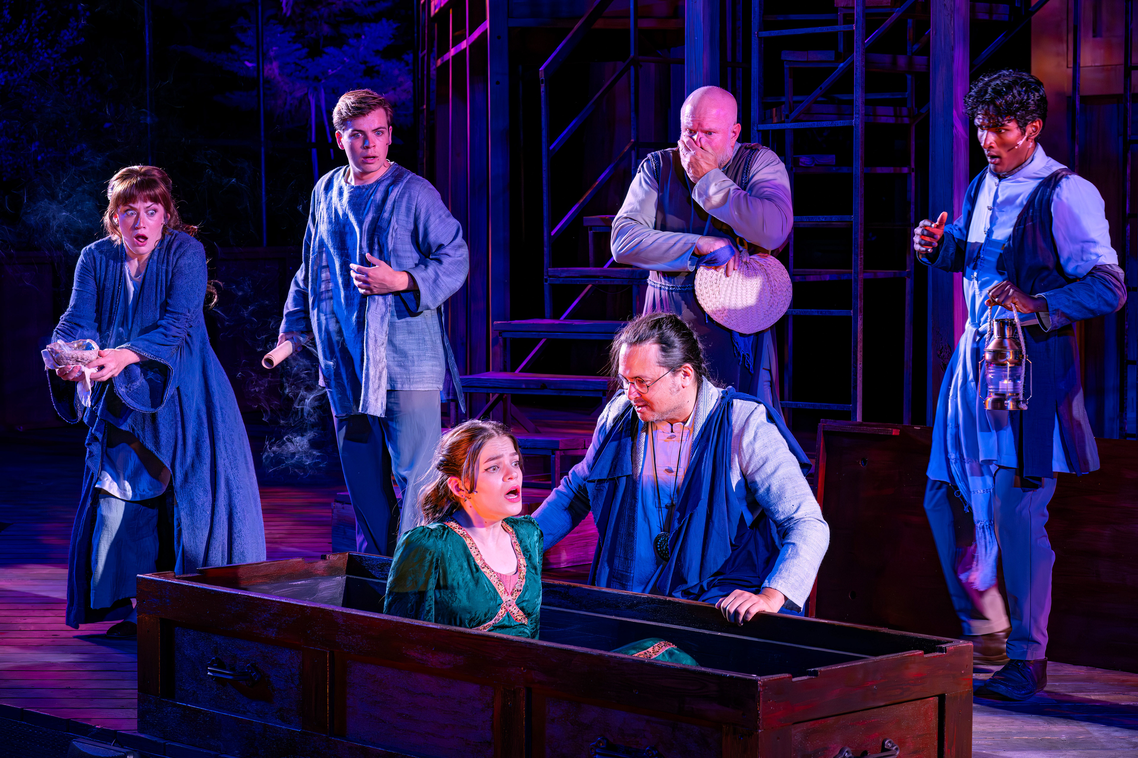 "Lily Kops is a standout, delivering with warmth and poise as Thaisa, then pivoting to sharp comic edge as the bawdy madam of Mytilene. She handles both roles with striking versatility, moving from regal grace to earthy humor with ease."